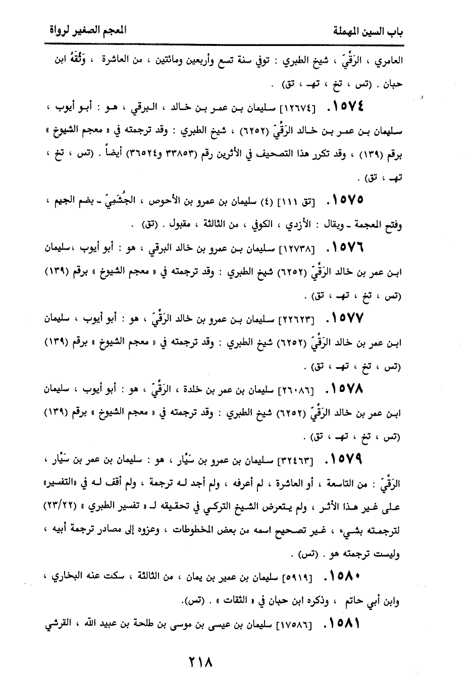 1576 - [12738] سليمان بن عمرو بن خالد البرقي، هو أبو أيوب، سليمان بن عمر بن خالد الرقي (6252) شيخ الطبري، وقد ترجمته في " معجم الشيوخ " برقم (139) (تس، تخ، تهـ، تق).