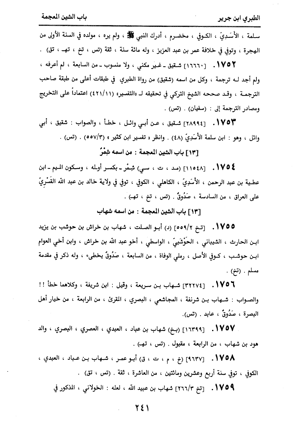 1752 - [16660] شقيق - غير مكني ولا منسوب -، من السابعة، لم أعرفه، ولم أجد له ترجمة، وكل من اسمه (شقيق)، من رواة الطبري في طبقات أعلى من طبقة صاحب الترجمة، وقد صححه الشيخ التركي في تحقيقه لـ " التفسير " (11/ 421) اعتمادا على التخريج ومصادر الترجمة إلى (سفيان). (تس).