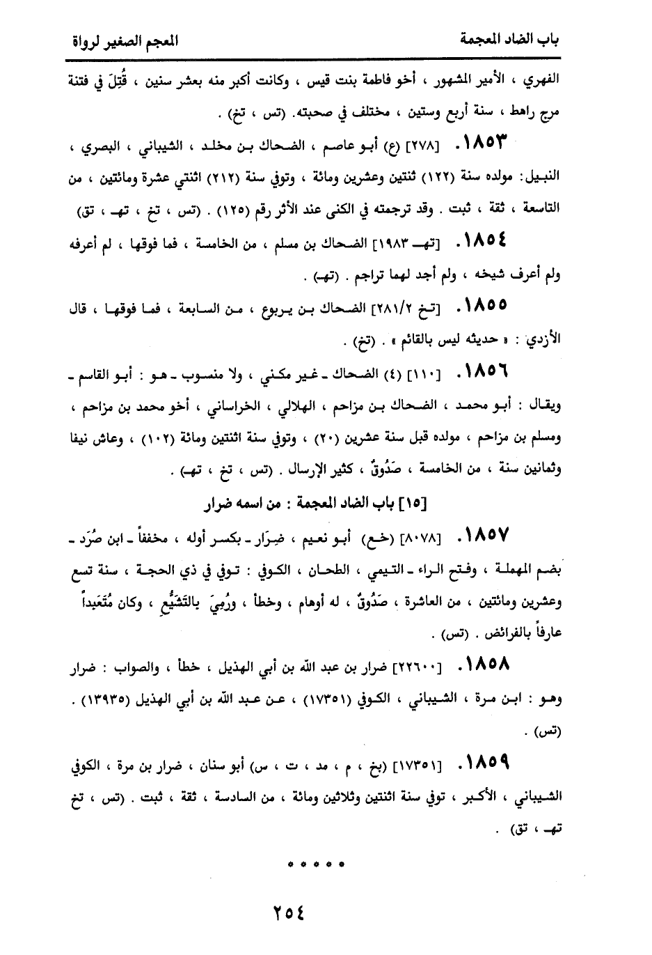 1854 - [تهـ 1983] الضحاك بن مسلم، من الخامسة فما فوقها، لم أعرفه، ولم أعرف شيخه، ولم أجد لهما تراجم. (تهـ).