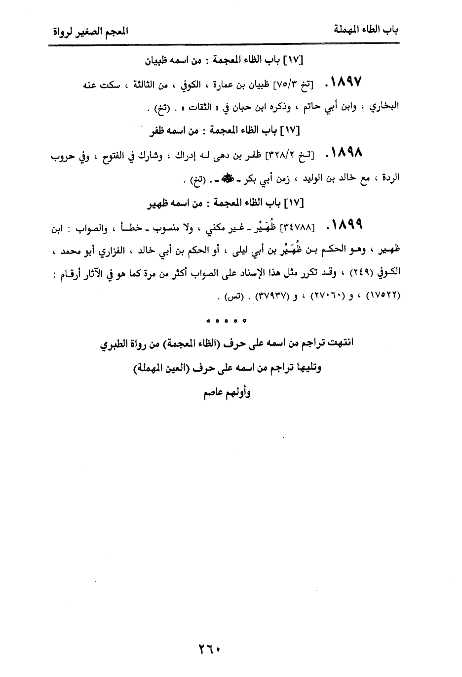 انتهت تراجم من اسمه على حرف (الظاء المعجمة) من رواة الطبري