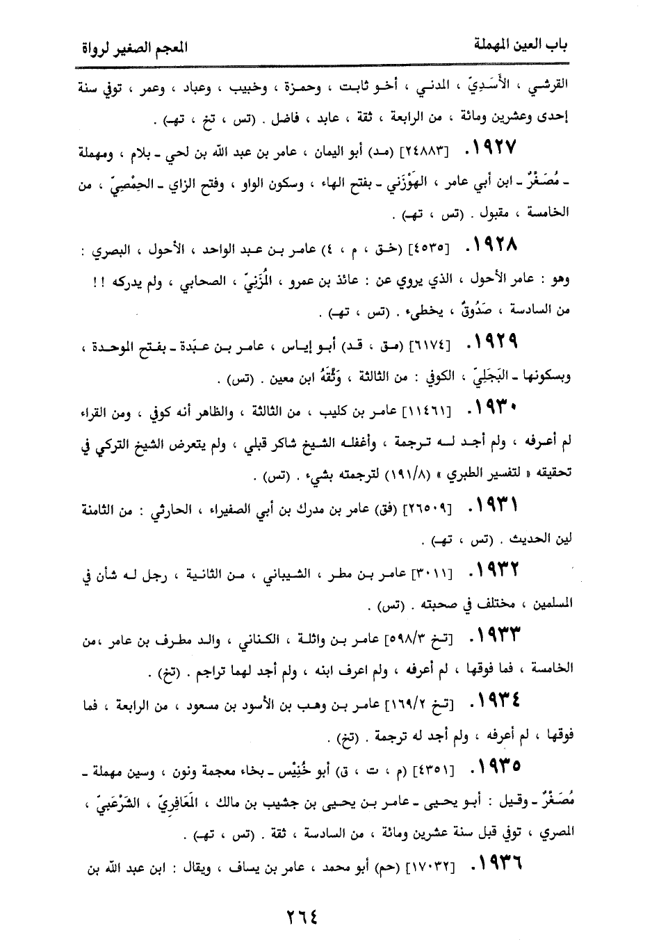 1931 - [26509] (فق) عامر بن مدرك بن أبي الصفيراء، الحارثي، من الثامنة، لين الحديث. (تس، تهـ).