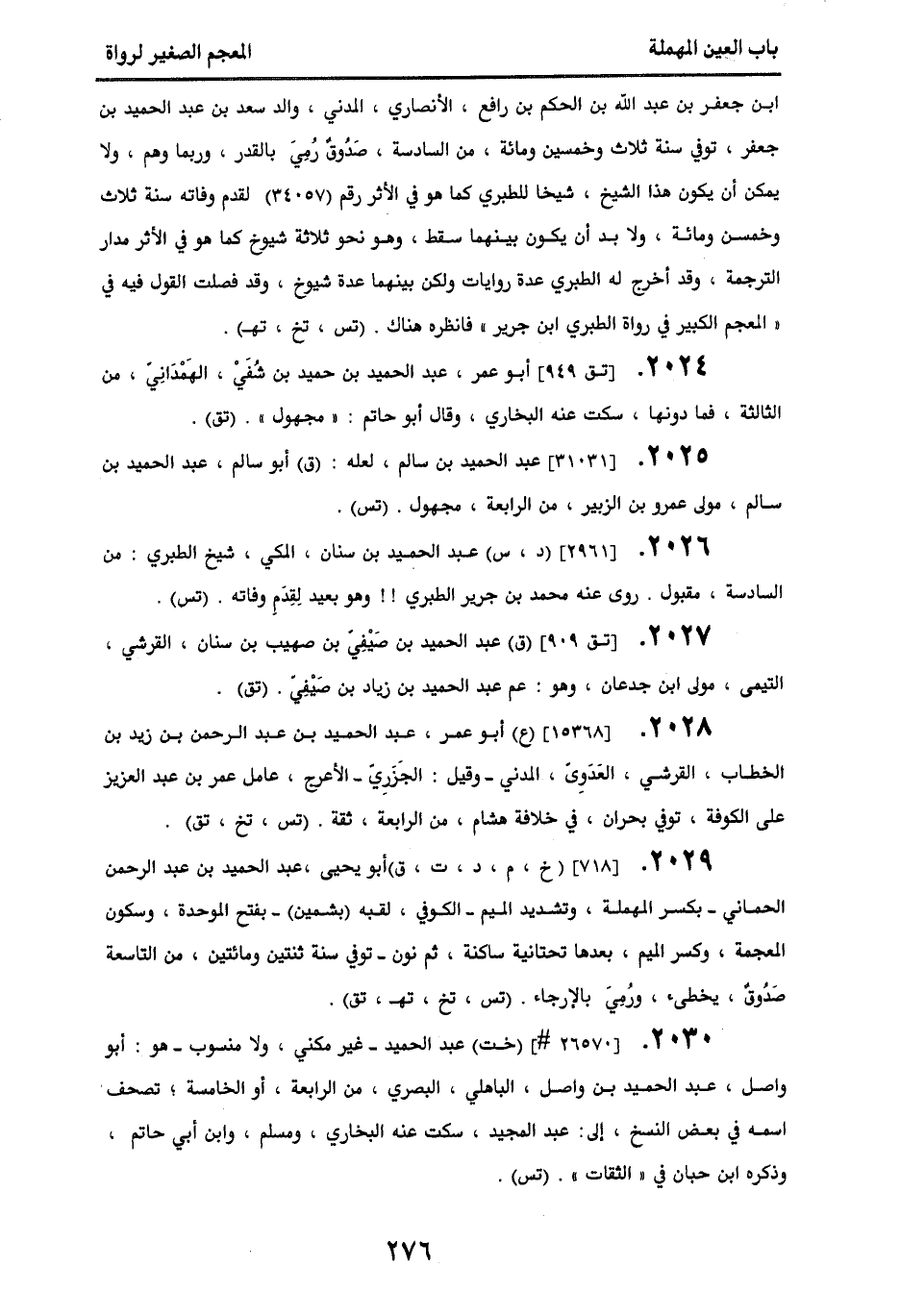 2026 - [2961] (د، س) عبد الحميد بن سنان، المكي، شيخ الطبري، من السادسة، مقبول، روى عنه محمد بن جرير الطبري!! وهو بعيد لقدم وفاته. (تس).