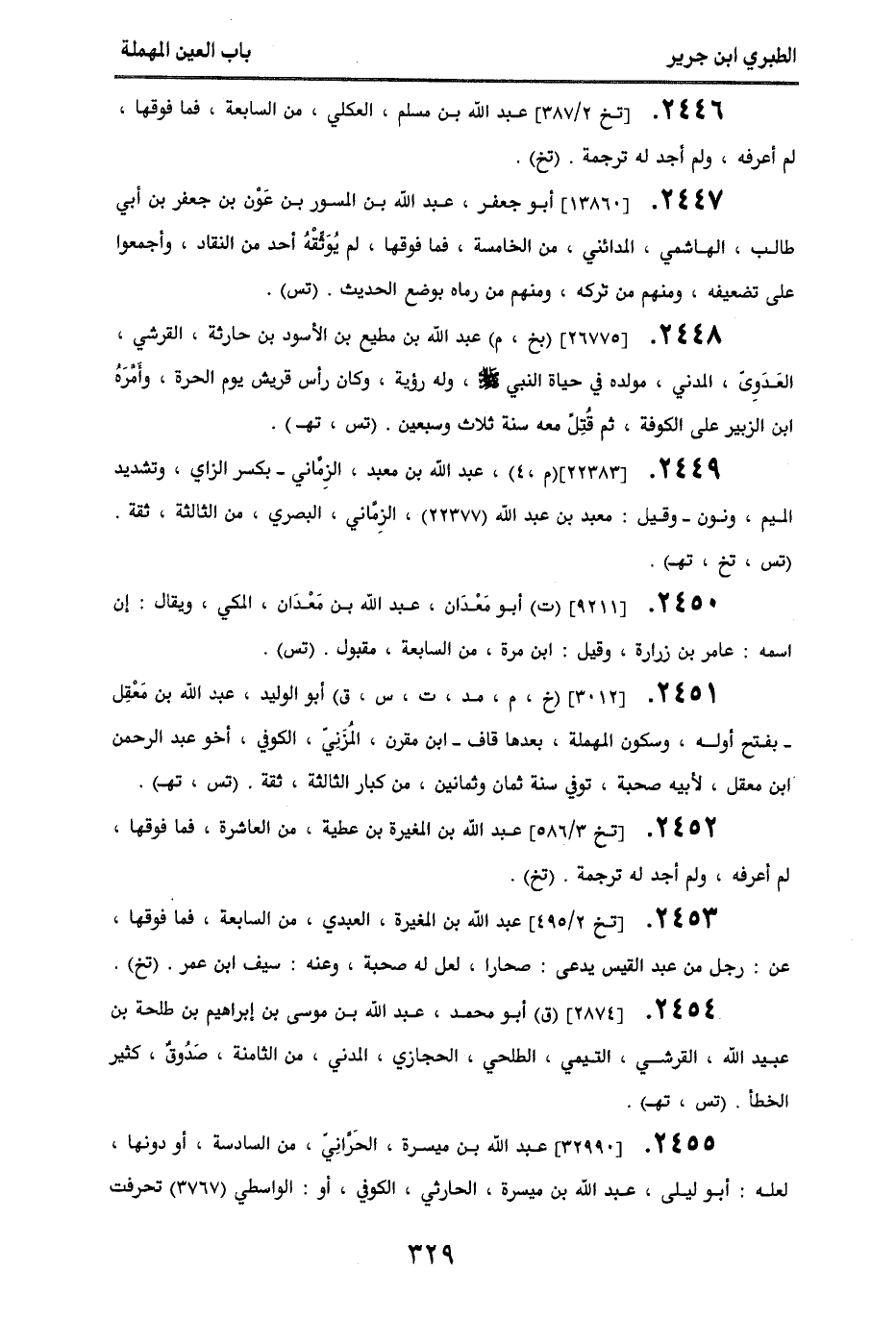 2446 - [تخ 2/ 387] عبد الله بن مسلم، العكلي، من السابعة فما فوقها، لم أعرفه، ولم أجد له ترجمة. (تخ).