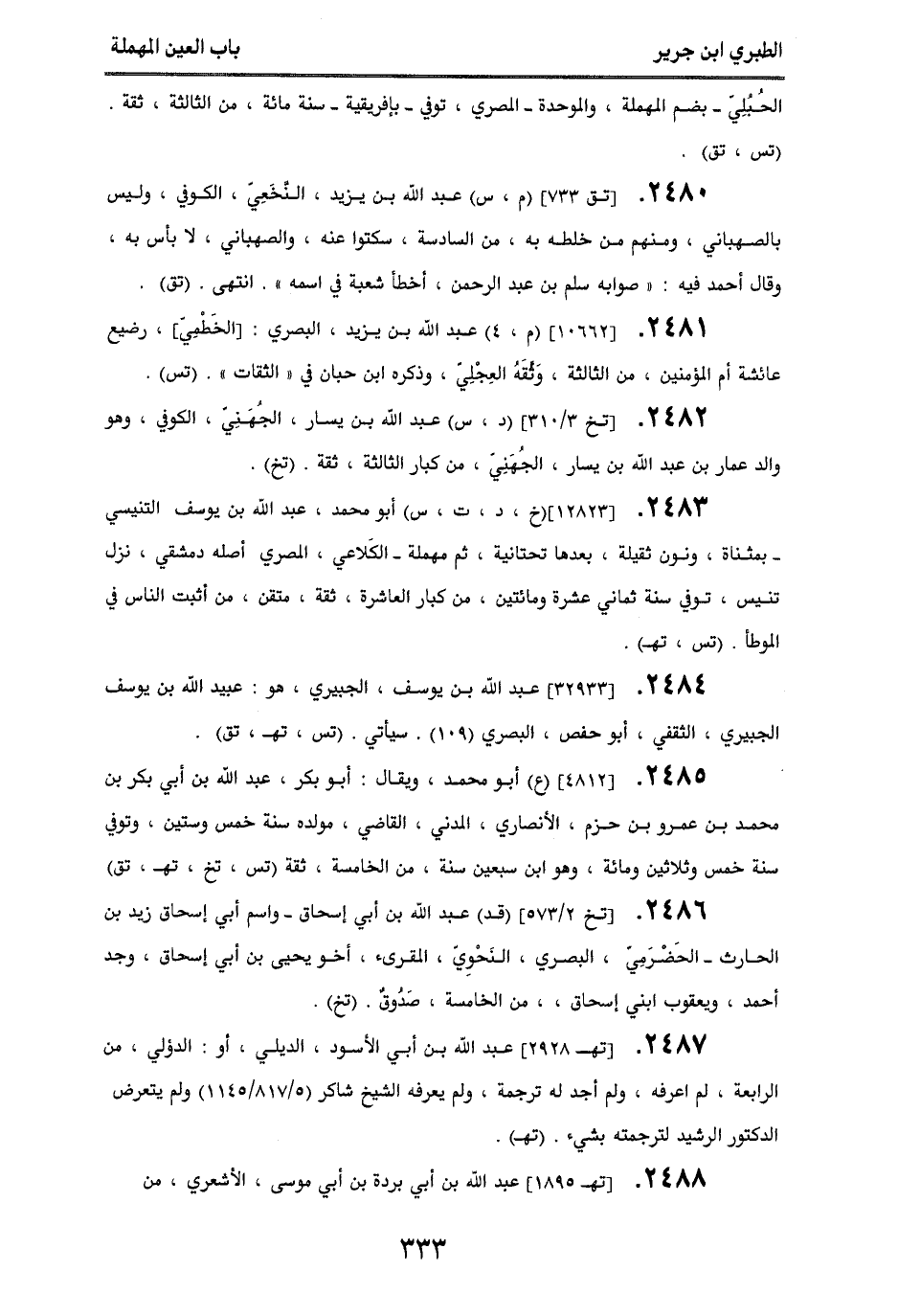 2484 - [32933] عبد الله بن يوسف، الجبيري، هو عبيد الله بن يوسف الجبيري، الثقفي، أبو حفص، البصري (109)، سيأتي. (تس، تهـ، تق).