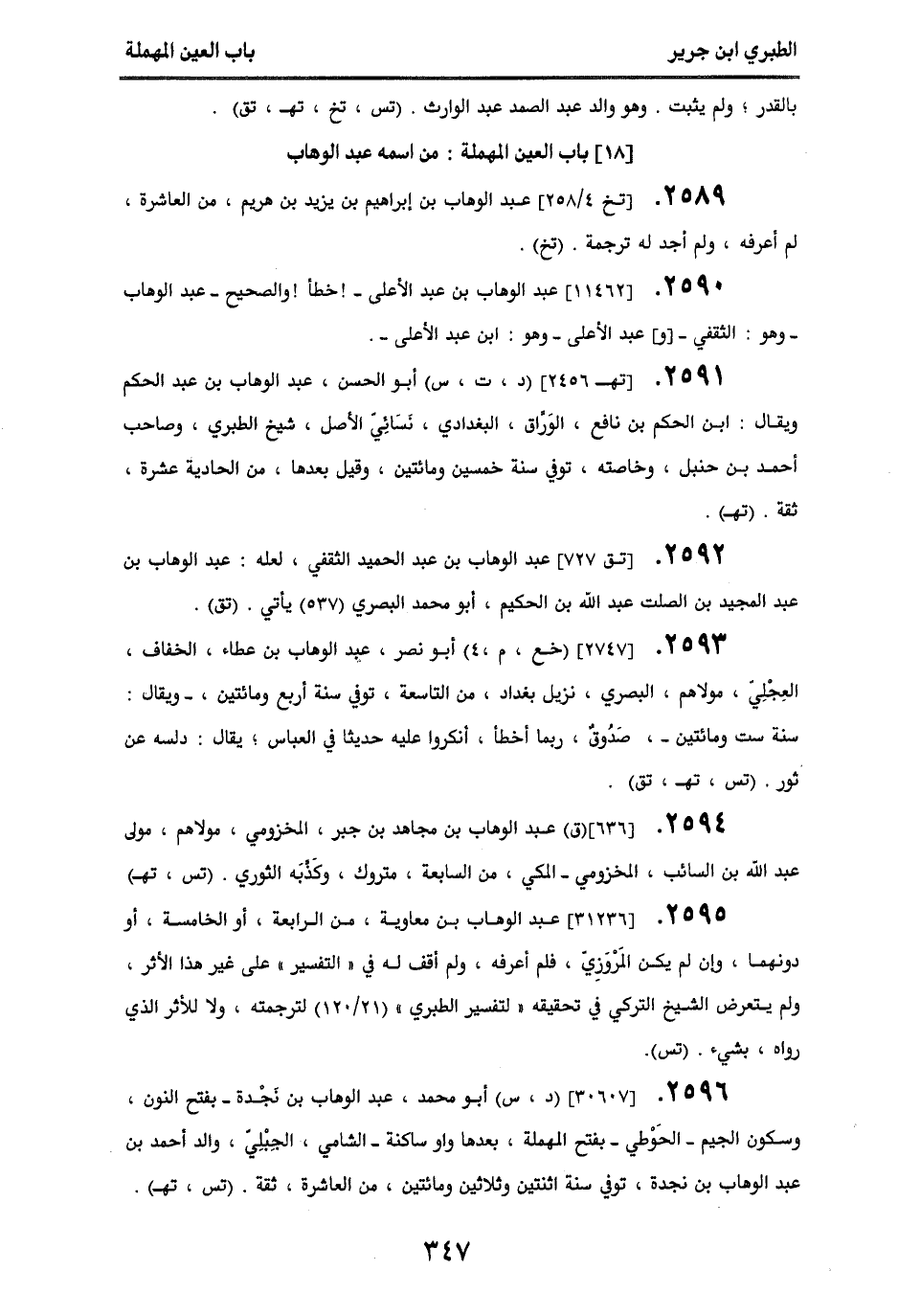 [18] باب العين المهملة: من اسمه عبد الوهاب
