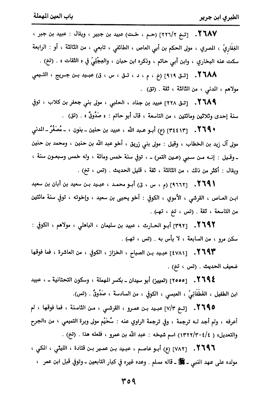 2688 - [تق 919] (خ، م، د، تق، س، ق) عبيد بن جريج، التيمي، مولاهم، المدني، من الثالثة، ثقة. (تق).