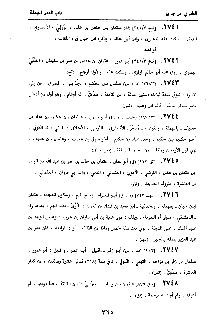 2748 - [تق 879] عثمان بن زياد، العجلي، من الثالثة فما دونها، لم أعرفه، ولم أجد له ترجمة. (تق).