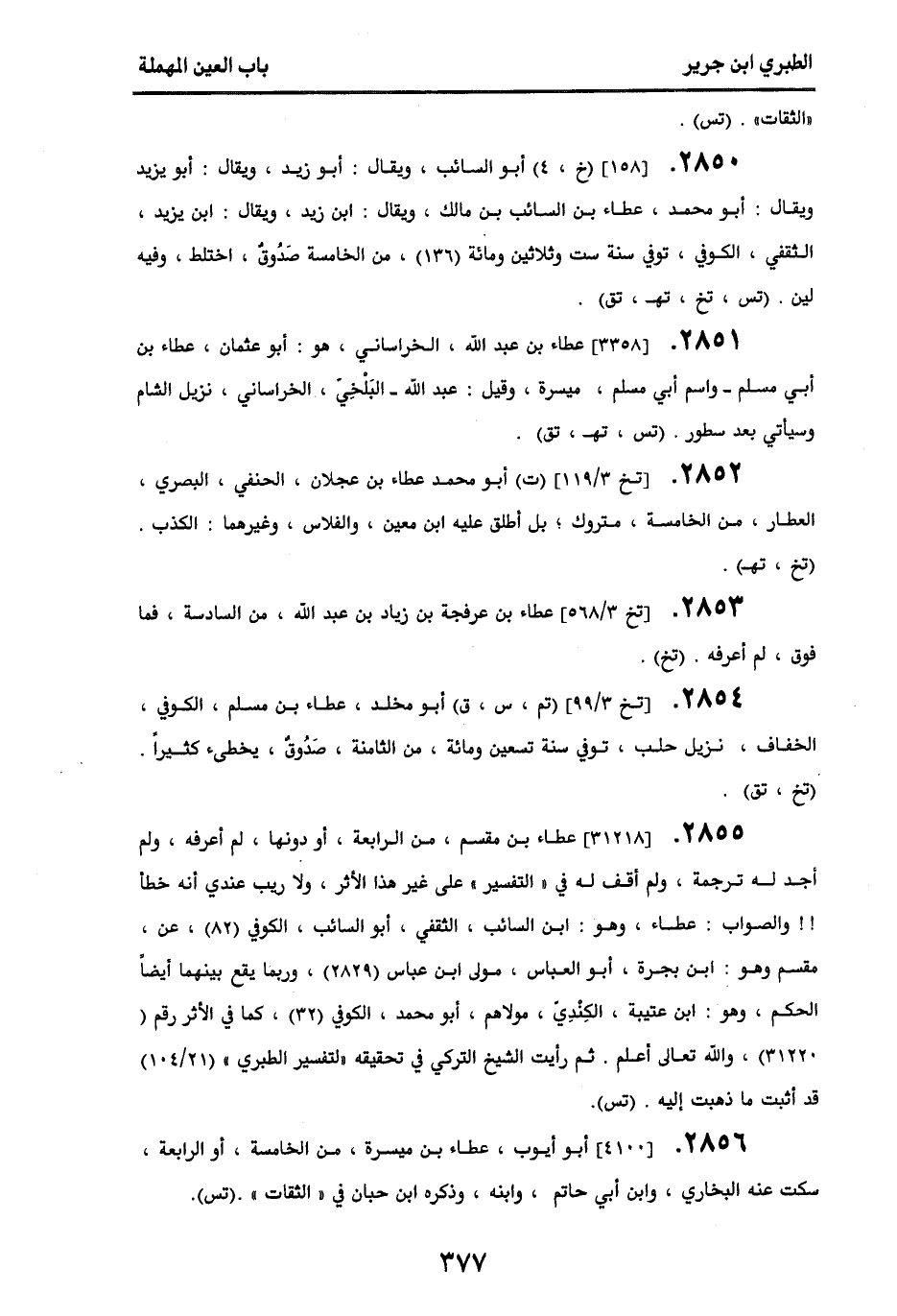 2853 - [تخ 3/ 568] عطاء بن عرفجة بن زياد بن عبد الله، من السادسة فما فوق، لم أعرفه. (تخ).