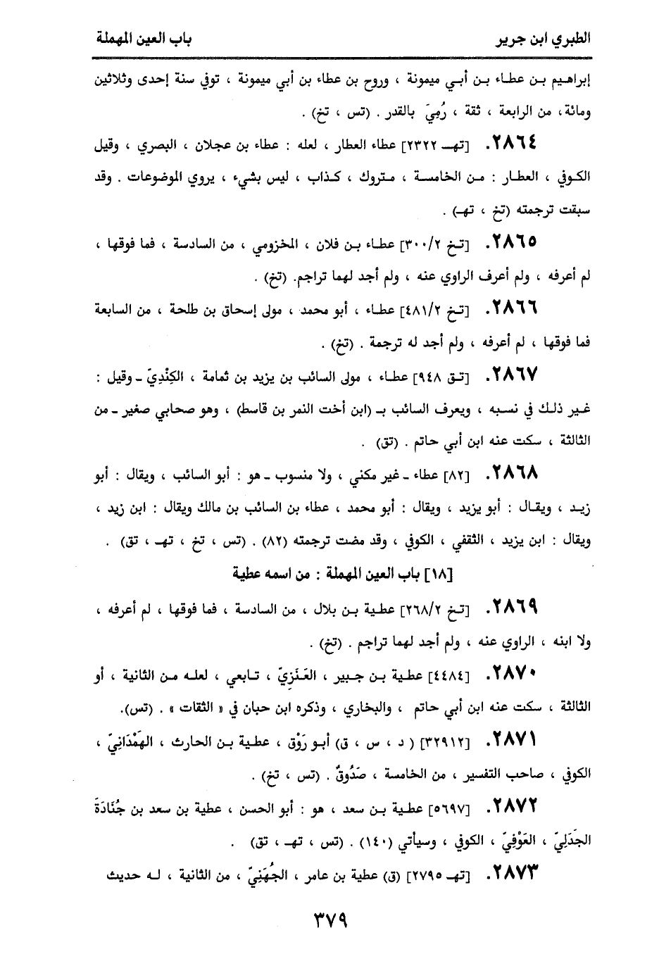 2872 - [5697] عطية بن سعد، هو أبو الحسن، عطية بن سعد بن جنادة الجدلي، العوفي، الكوفي، وسيأتي (140). (تس، تهـ، تق).