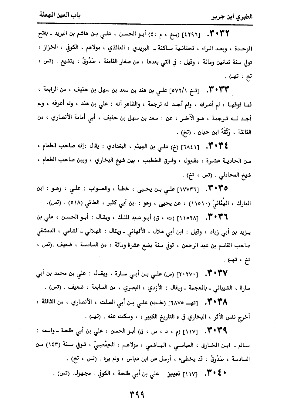 3040 - [117] تمييز، علي بن أبي طلحة، الكوفي، مجهول. (تس).