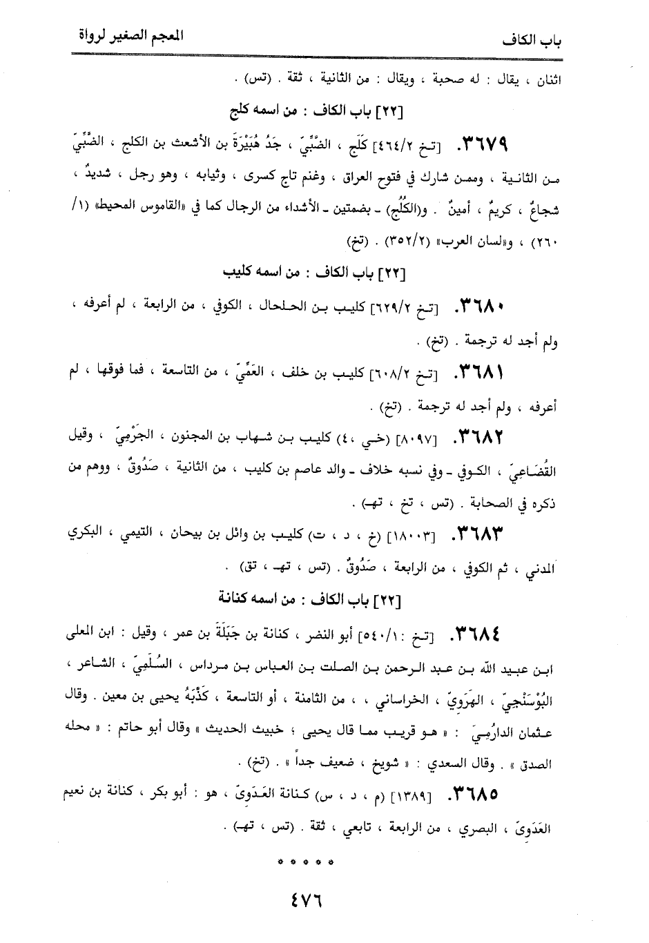 3680. [تخ 2/ 629] كليب بن الحلحال، الكوفي، من الرابع، لم أعرفه، ولم أجد له ترجمة. (تخ).