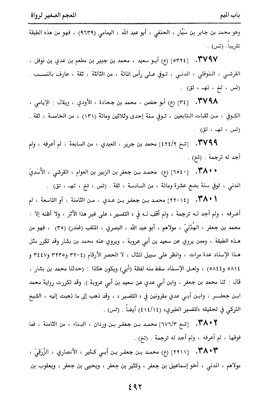 3799. [تخ 2/ 424] محمد بن جرير، العبدي، من السابعة، لم أعرفه، ولم أجد له ترجمة. (تخ).