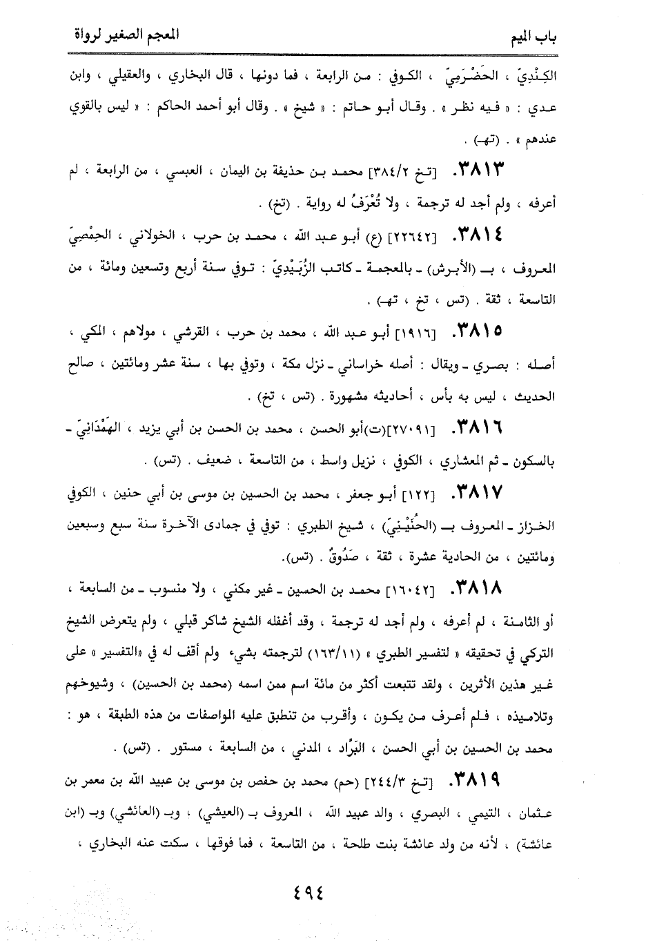 3813. [تخ 2/ 384] محمد بن حذيفة بن اليمان، العبسي، من الرابعة، لم أعرفه، ولم أجد له ترجمة، ولا تُعرَفُ له رواية. (تغ).