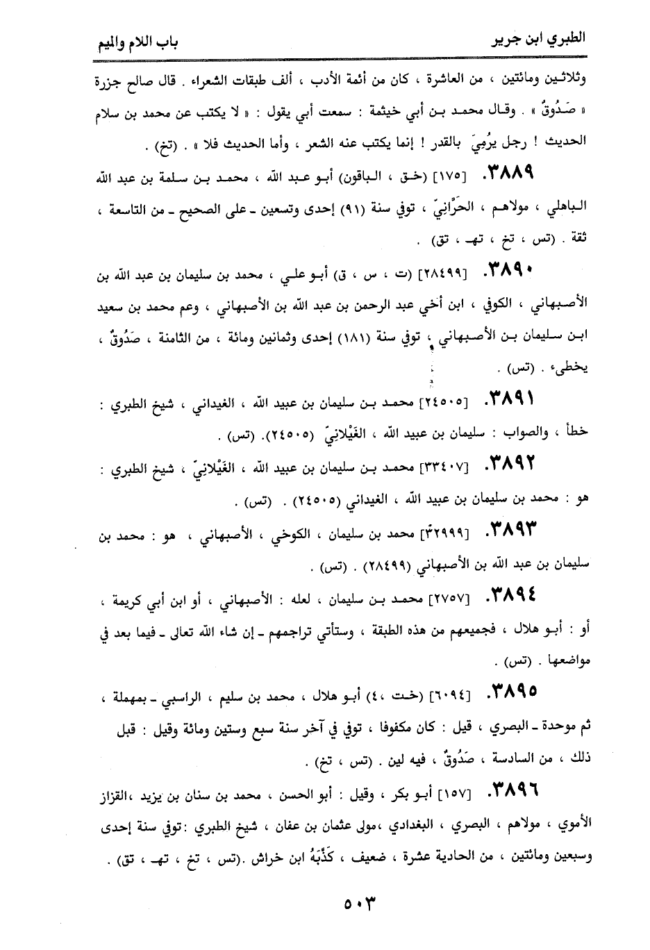 3891. [24505] محمد بن سليمان بن عبيد الله، الغيداني، شيخ الطبري: خطأ، والصواب: سليمان بن عبيد الله، الغَيلانِيّ (24505). (تس).