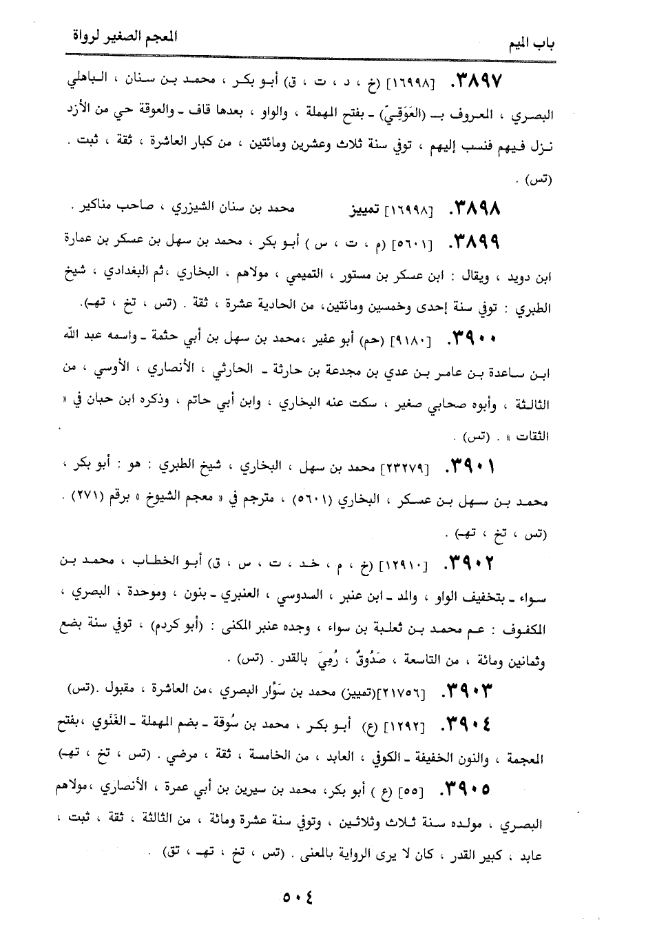 3901. [23279] محمد بن سهل، البخاري، شيخ الطبري: هو: أبو بكر، محمد بن سهل بن عسكر، البخاري (5601)، مترجم في ((معجم الشيوخ)) برقم (271). (تس، تخ، تهـ).