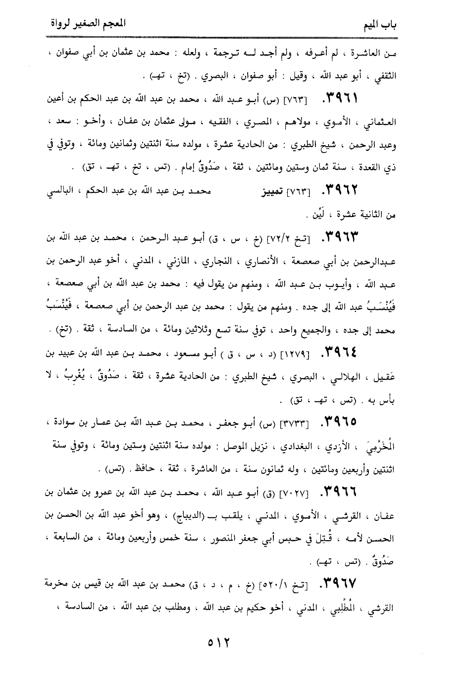 3962. [763] تمييز محمد بن عبد الله بن عبد الحكم، البالسي من الثانية عشرة، لَين.