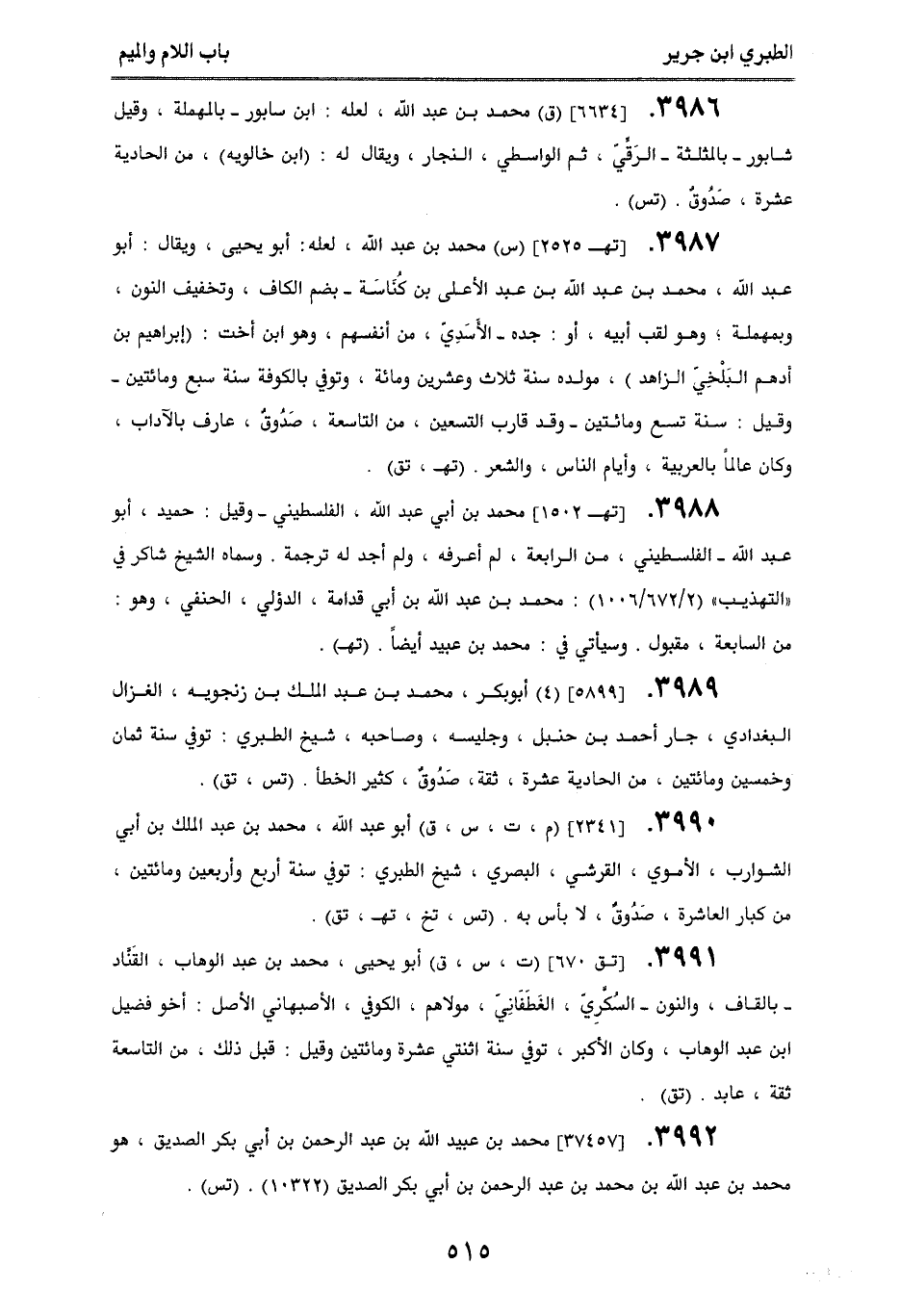 3992. [37457] محمد بن عبيد الله بن عبد الرحمن بن أبي بكر الصديق، هو محمد بن عبد الله بن محمد بن عبد الرحمن بن أبي بكر الصديق (10322). (تس).