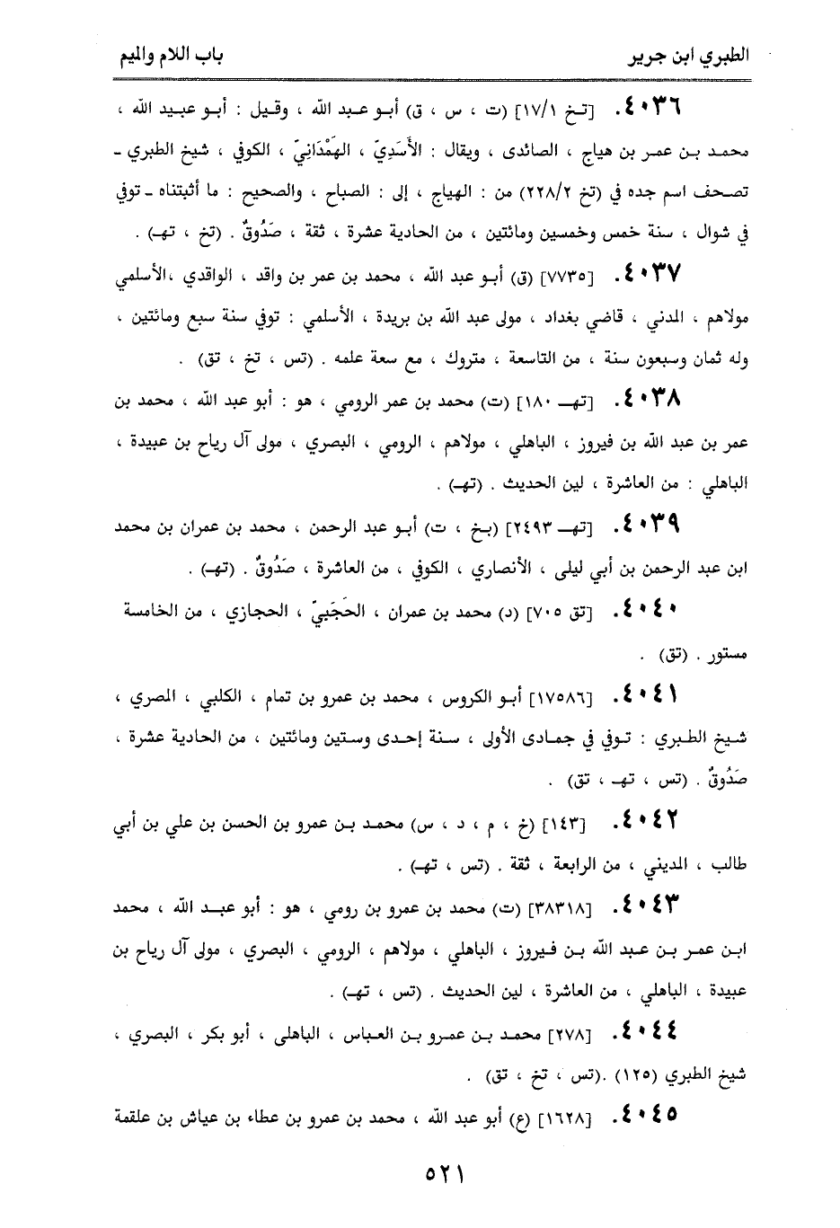 4044. [278] محمد بن عمرو بن العباس، الباهلي، أبو بكر، البصري، شيخ الطبري (125). (تس، تخ، تق).