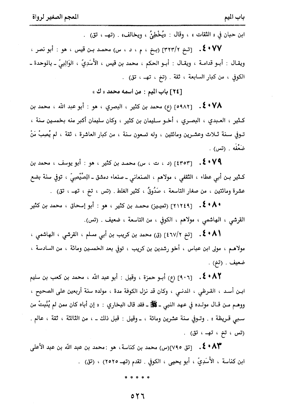 4083. [تق 795] (س) محمد بن كناسة، هو: محمد بن عبد الله بن عبد الأعلى بن كناسة، الأسَدِي، أبو يحيى، الكوفي، تقدم (تهـ 2525)، (تق).