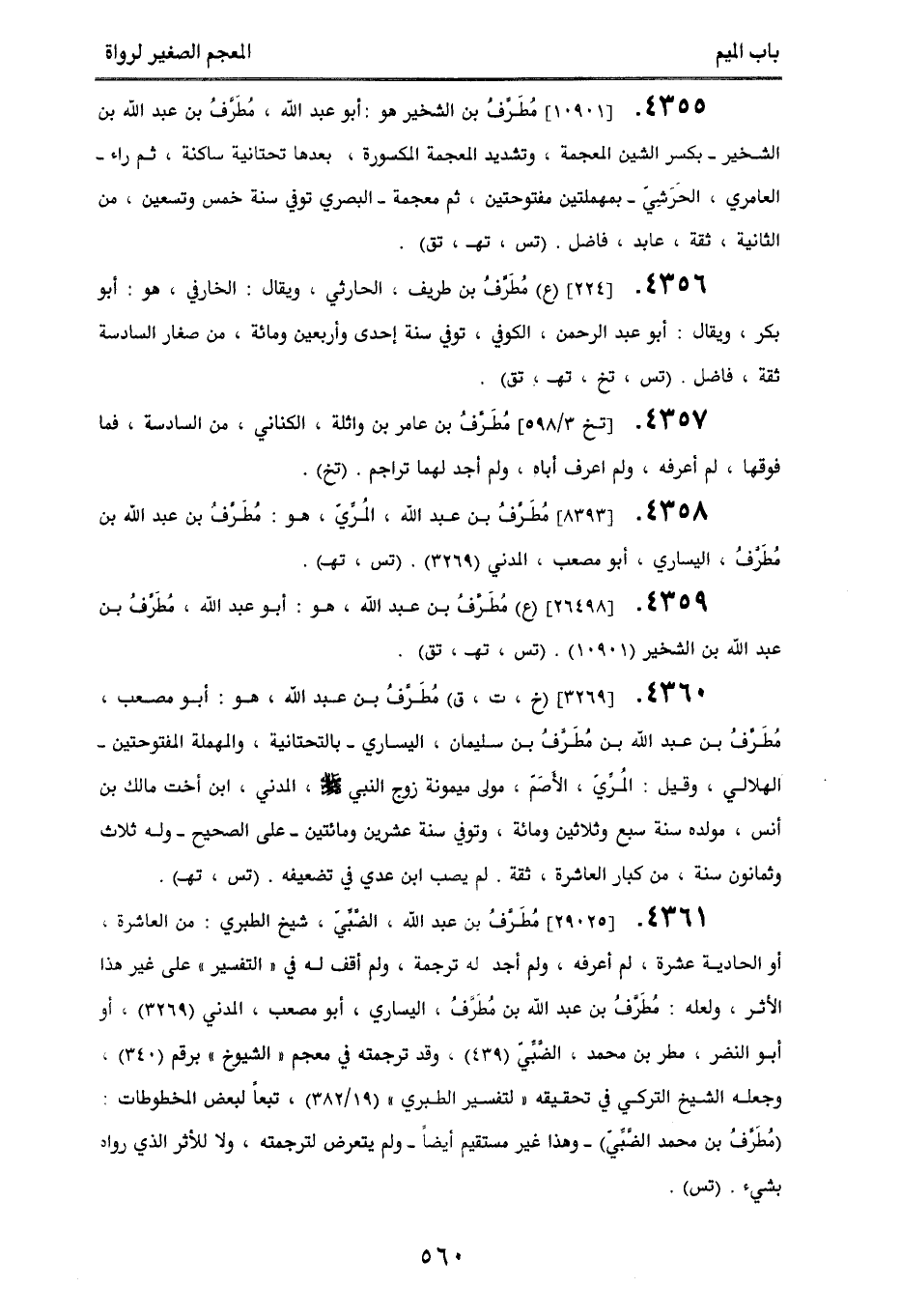 4359. [26498] (ع) مُطَرفُ بن عبد الله، هو: أبو عبد الله، مُطَرفُ بن عبد الله الشخير (10901). (تس، تهـ، تق).