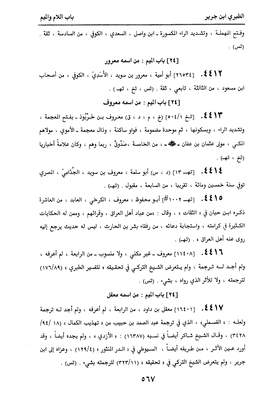 4416. [11408] معروف - غير مكني، ولا منسوب - من الرابعة، لم أعرفه، ولم أجد له ترجمة، ولم يتعرض الشيخ التركي في تحقيقه ((لتفسير الطبري)) (89/ 176) لترجمته، ولا للأثر الذي رواه بشيء. (تس).