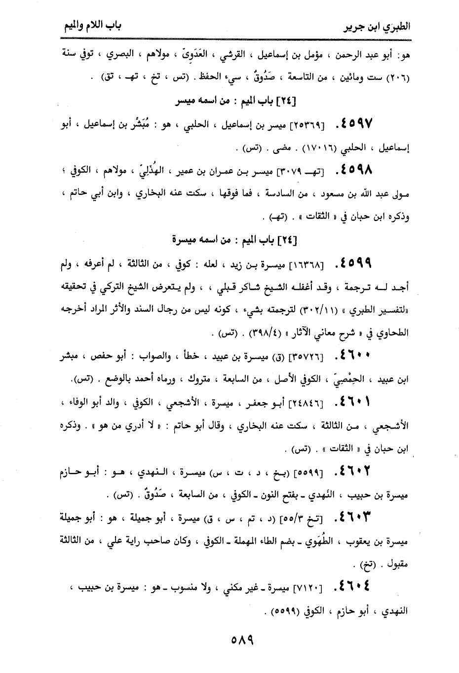 4597. [25369] ميسر بن إسماعيل، الحلبي، هو: مُبَشر بن إسماعيل، أبو إسماعيل، الحلبي (17016). مضى. (تس).