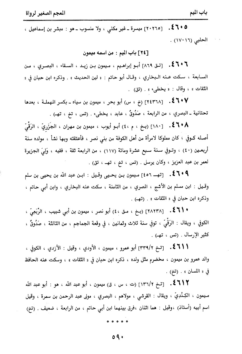 4605. [20265] ميسرة - غير مكني، ولا منسوب - هو: مبشر بن إسماعيل، الحلبي (17016).