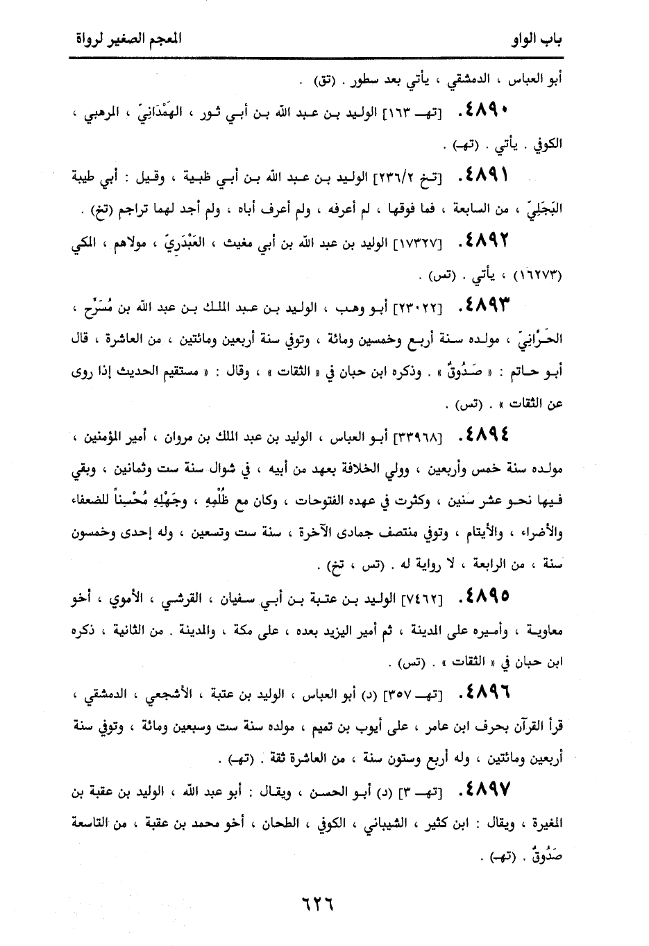 4890. [تهـ 163] الوليد بن عبد الله بن أبي ثور، الهَمدَانِي، المرهبي، الكوفي، يأتي. (تهـ).
