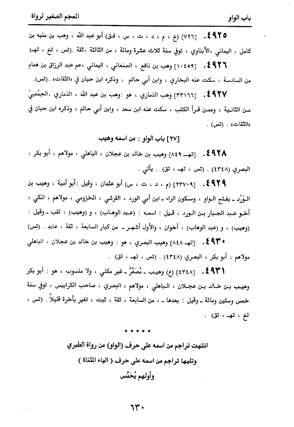 [27] باب الواو: من اسمه وهيب