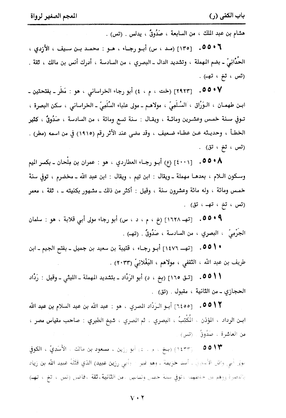 5509. [تهـ 1628] (خ، م، د، س) أبو رجاء مولى أبي قلابة، هو: سلمان الجَرمِي، البصري، من السادسة، صَدوق. (تهـ).