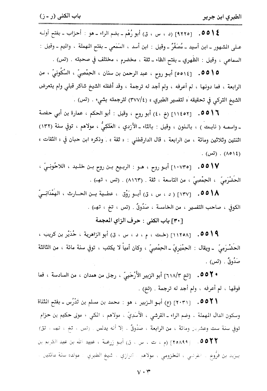 [30] باب الكنى: حرف الزاي المعجمة