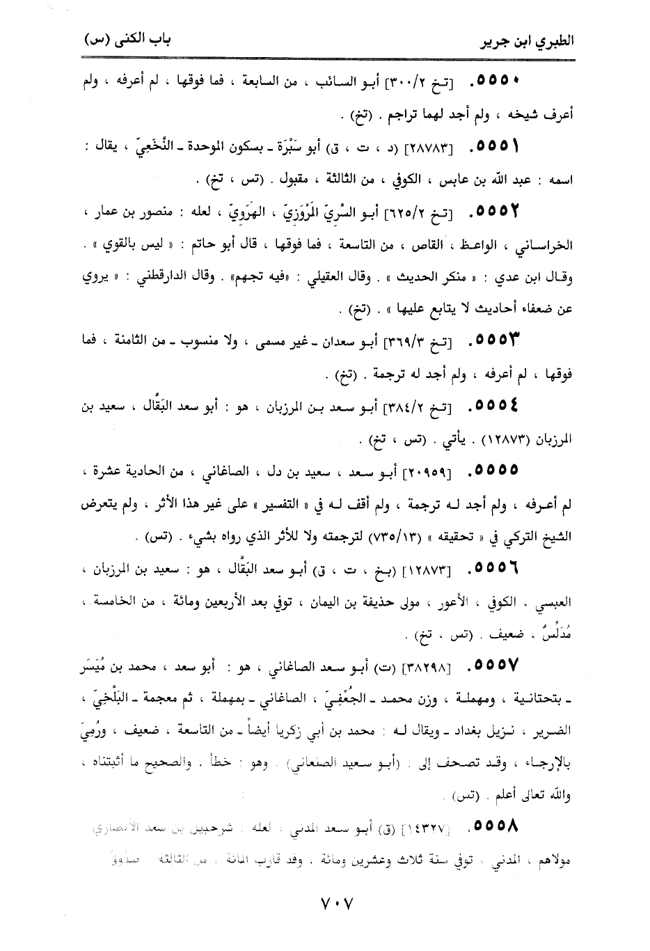 5554. [تخ 2/ 384] أبو سعد بن المرزبان، هو: أبو سعد البَقال، سعيد بن المرزبان (12873). يأتي. (تس، تخ).
