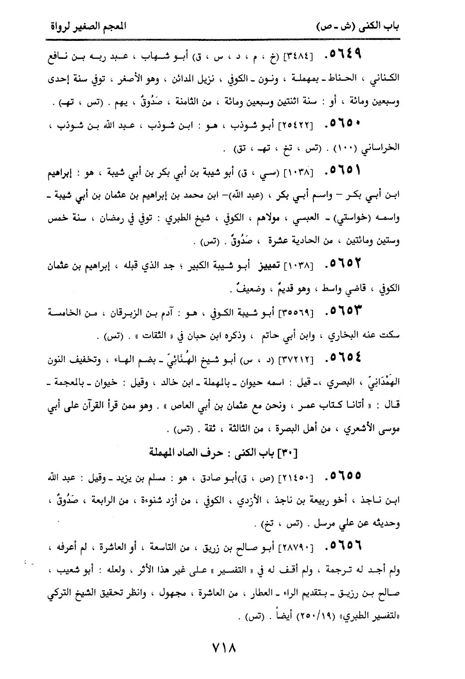 5650. [25422] أبو شوذب، هو: ابن شوذب، عبد الله بن شوذب، الخراساني (100). (تس، تخ، تهـ، تق).