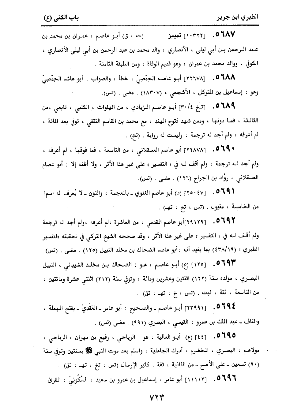 5692. [29129] أبو عاصم المقدمي، من العاشرة، لم أعرفه، ولم أجد له ترجمة، ولم أقف له في ((التفسير)) على غير هذا الأثر، وقد صححه الشيخ التركي في تحقيقه ((لتفسير الطبري)) (19/ 438) بما يفيد أنه: أبو عاصم الضحاك بن مخلد النبيل (125). مضى. (تس).