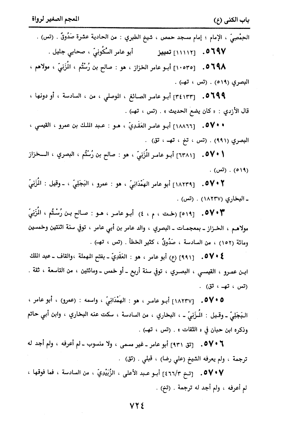 5700. [18866] أبو عامر العَقَدِي، هو: عبد الملك بن عمرو، القيسي، البصري (991). (تس، تخ، تهـ، تق).