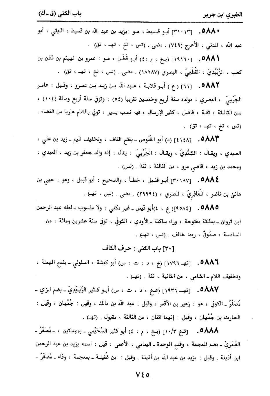 5880. [31013] أبو قسيط، هو: يزيد بن عبد الله بن قسيط، الليثي، أبو عبد الله، المدني، الأعرج (749) مضى. (تس، تخ، تهـ، تق).