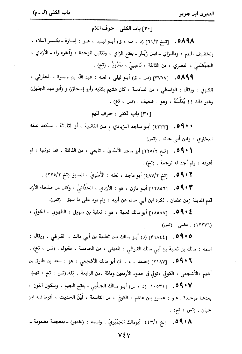5904. [18588] أبو مالك ثعلبة، هو: ثعلبة بن سهيل، الطهوي، الكوفي (12276) مضى. (تس).