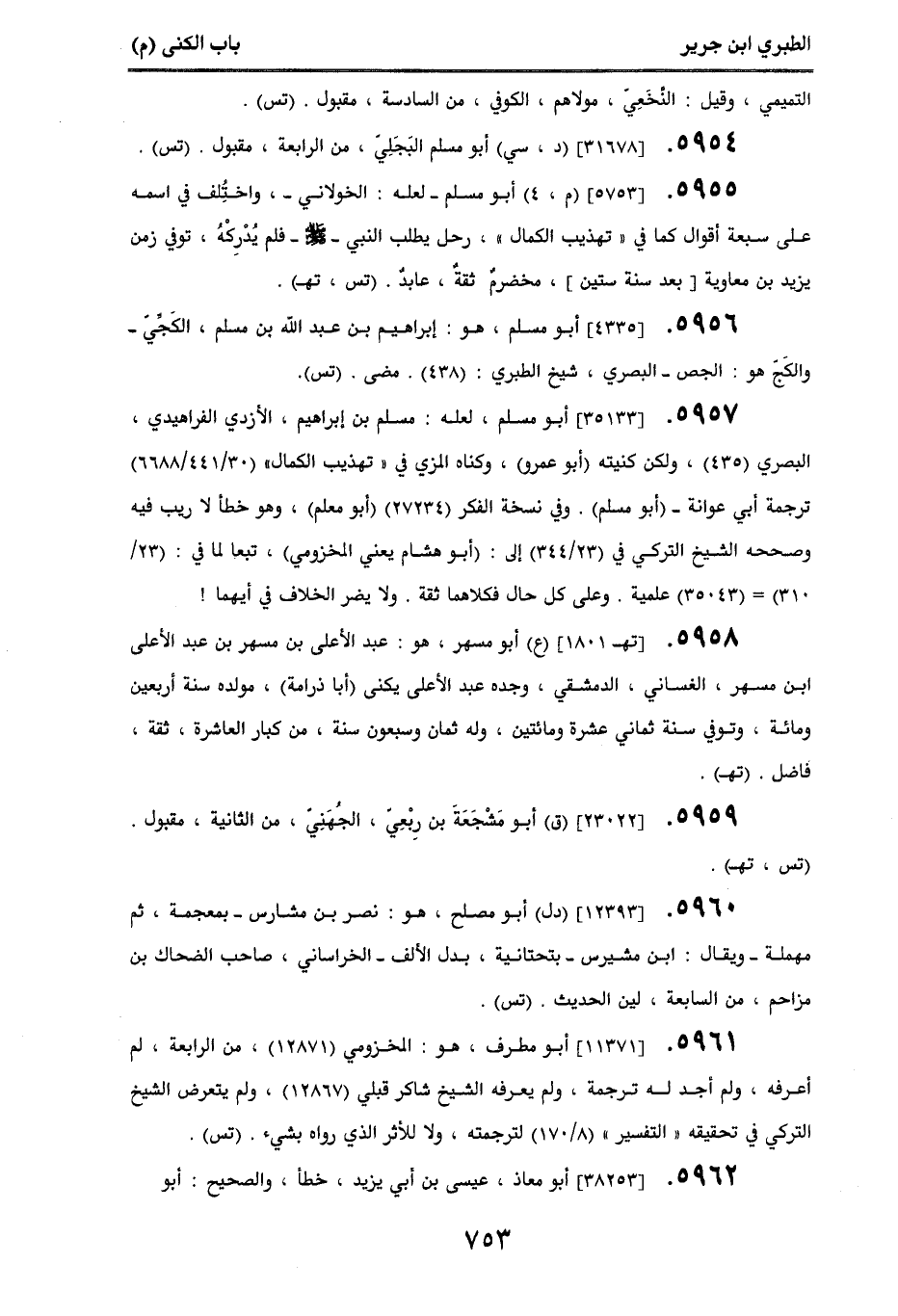 5956. [4335] أبو مسلم، هو: إبراهيم بن عبد الله بن مسلم، الكجي - والكج هو: الجص - البصري، شيخ الطبري (438) مضى. (تس).