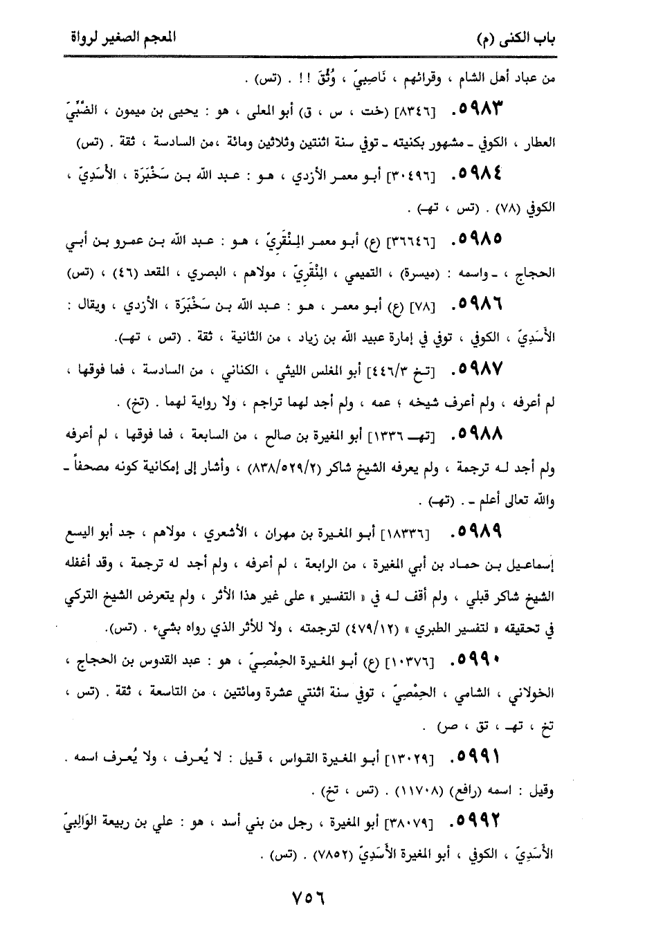 5992. [38079] أبو المغيرة، رجل من بني أسد، هو: على بن ربيعة الوالِبي، الأسدِي، الكوفي، أبو المغيرة الأسدِي (7852). (تس).