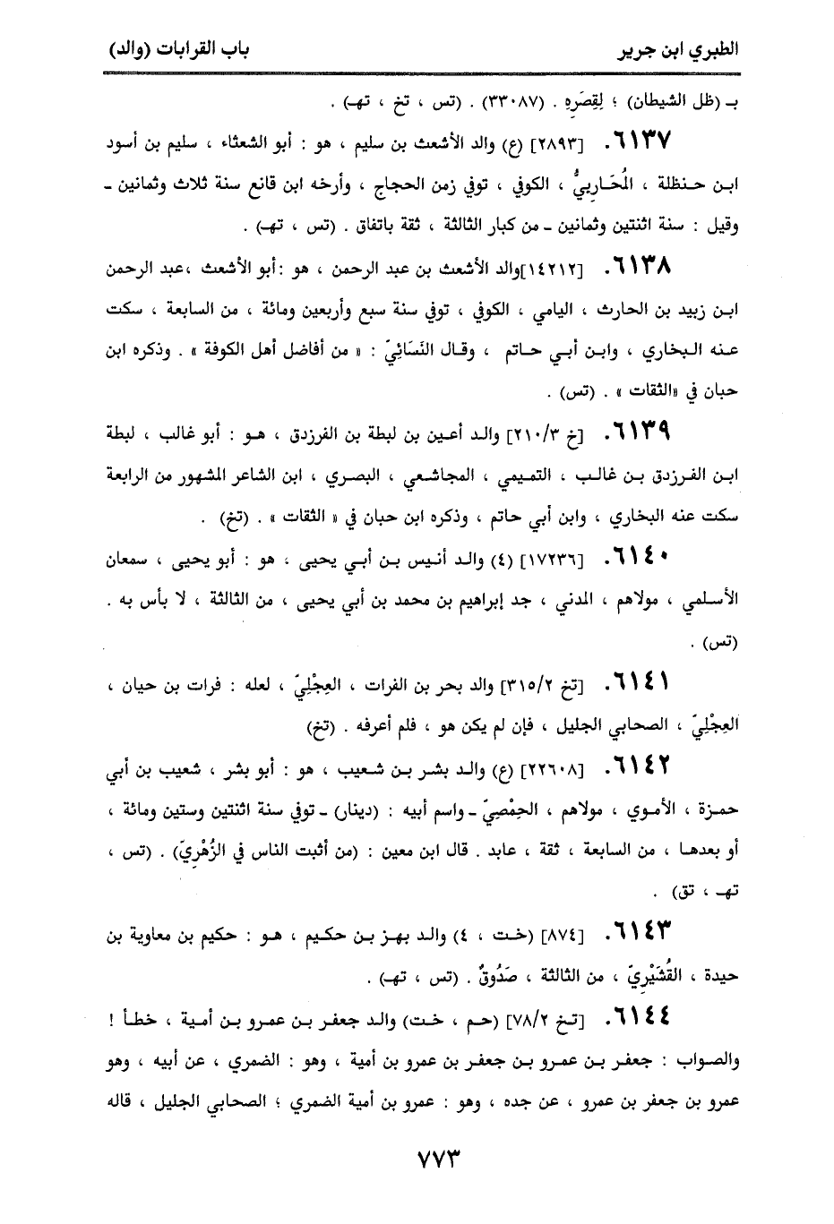 6143. [874] (خت، 4) والد بهز بن حكيم، هو: حكيم بن معاوية بن حيدة، القشيرِي، من الثالثة، صدوق. (تس، تهـ).