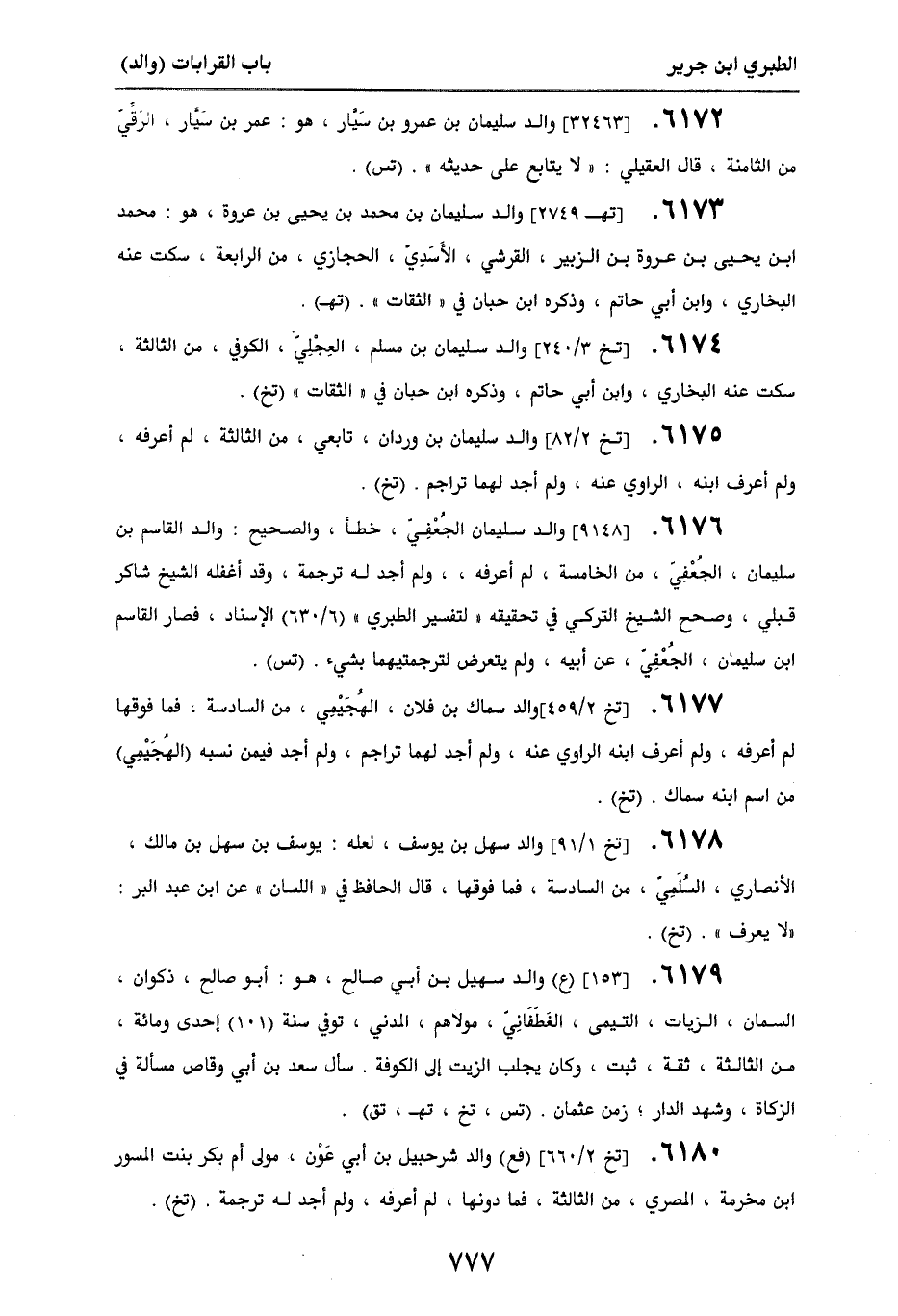 6176. [9148] والد سليمان الجعفِي، خطأ، والصحيح: والد القاسم بن سليمان، الجعفِي، من الخامسة، لم أعرفه، ولم أجد له ترجمة، وقد أغفله الشيخ شاكر قبلي، وصحح الشيخ التركي في تحقيقه ((لتفسير الطبري)) (6/ 630) الإسناد، قصار القاسم بن سليمان، الجعفِي، عن أبيه، ولم يتعرض لترجمتيهما بشيء. (تس).