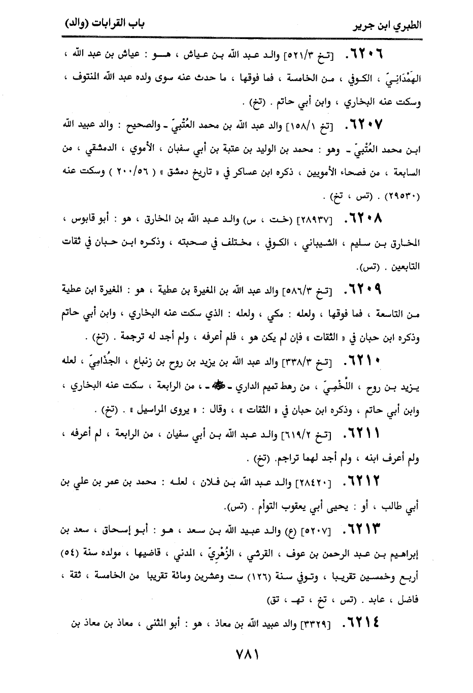 6212. [28420] والد عبد الله بن فلان، لعله محمد بن عمر بن علي بن أبي طالب، أو: يحيى أبي يعقوب التوأم. (تس).