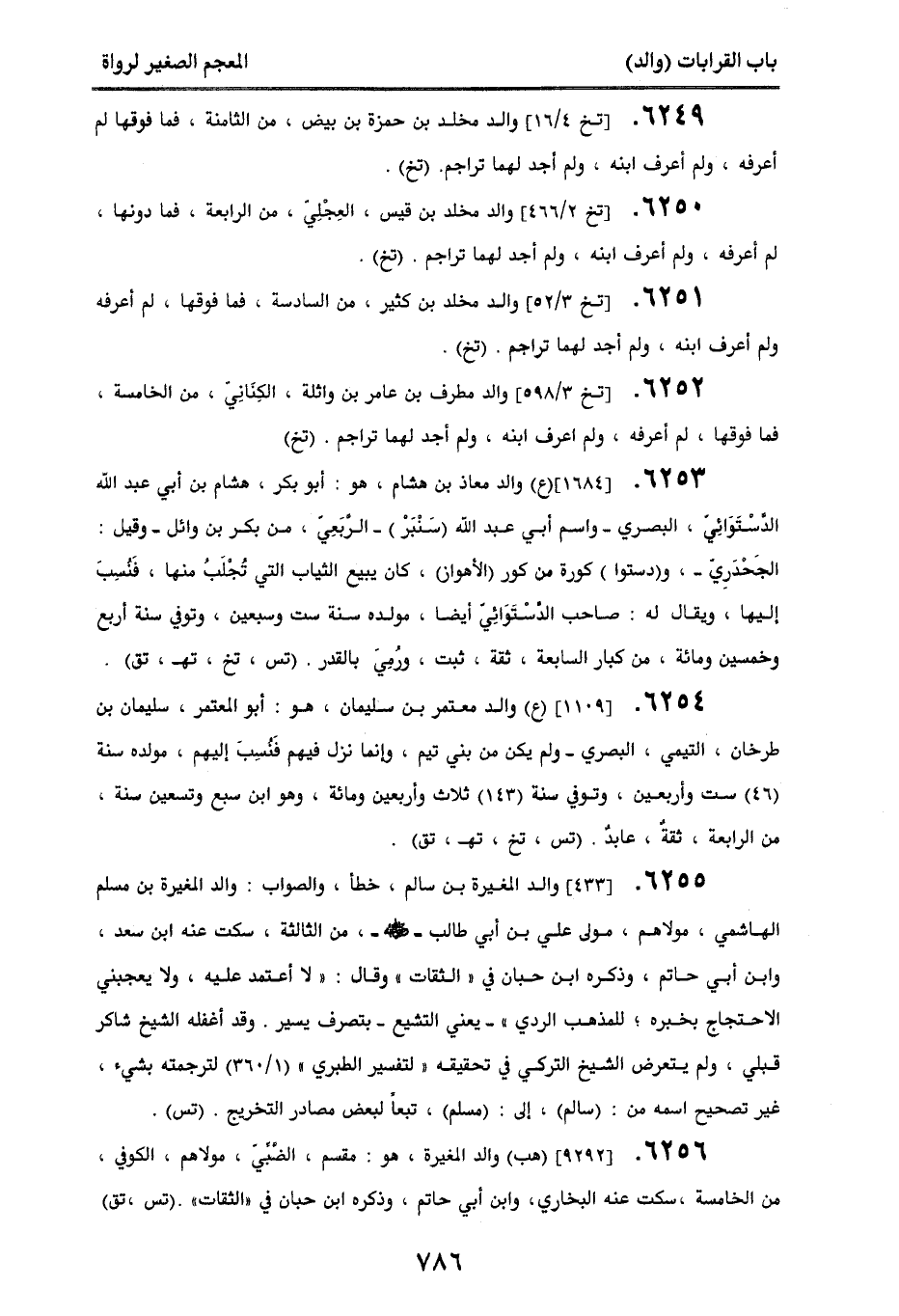6251. [تخ 3/ 52] والد مخلد بن كثير، من السادسة، فما فوقها، لم أعرفه، ولم أعرف ابنه، ولم أجد لهما تراجم. (تخ).