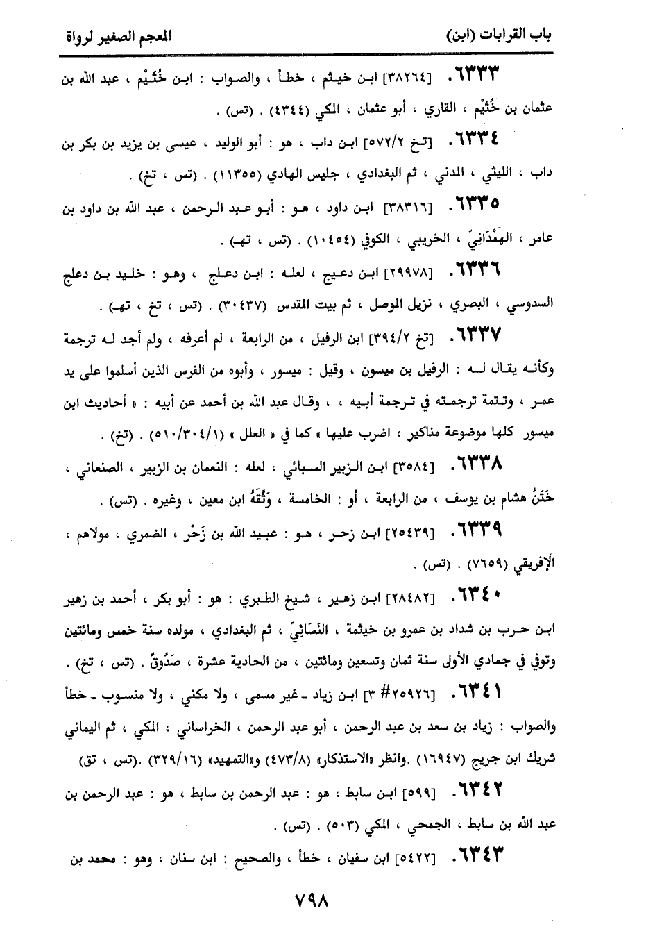6342. [599] ابن سابط، هو: عبد الرحمن بن سابط، هو: عبد الرحمن بن عبد الله بن سابط، الجمحي، المكي (503). (تس).