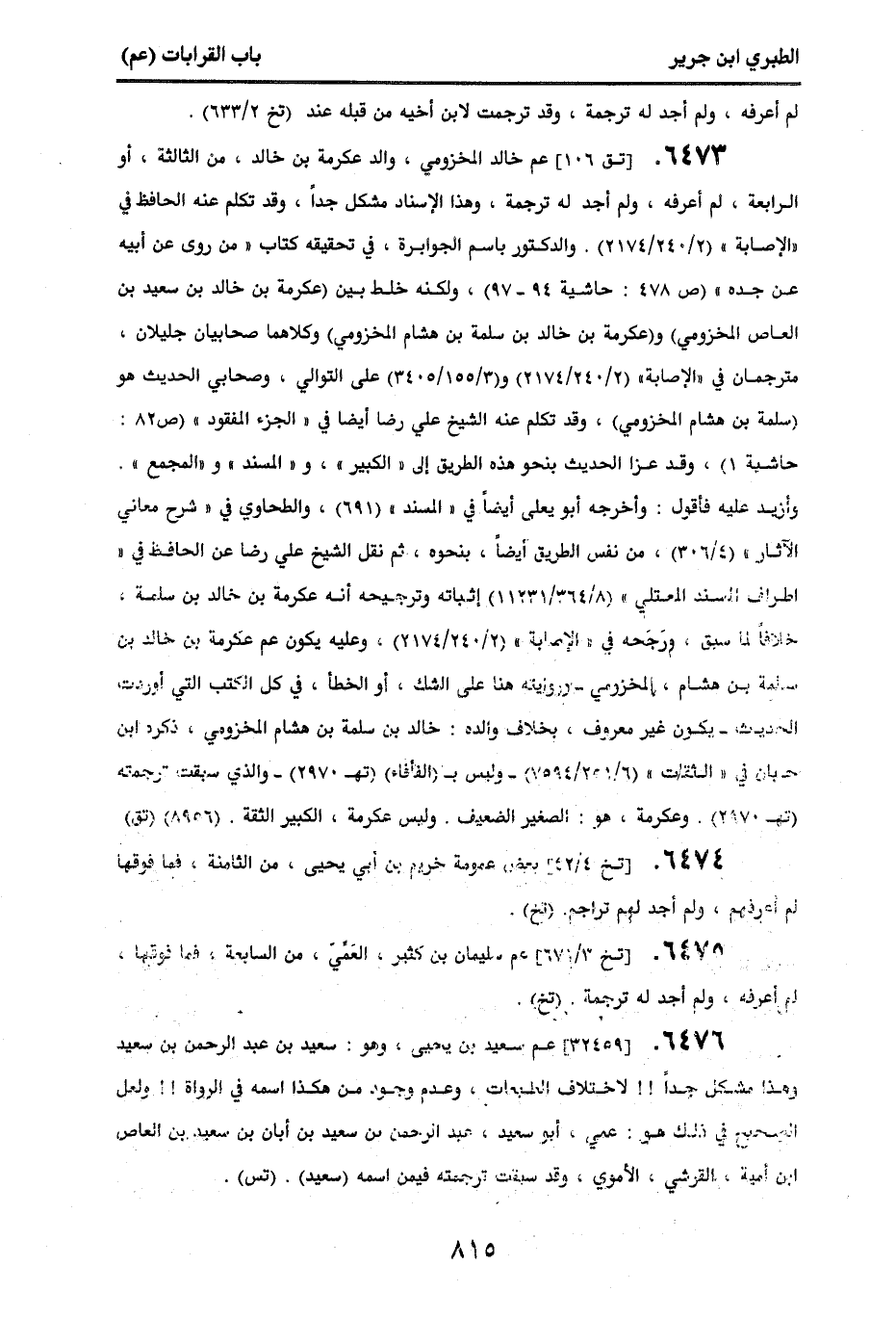 6474. [تخ 4/ 42] بعض عمومة خريم بن أبي يحيى، من الثامنة، فما فوقها، لم أعرفهم، ولم أجد لهم تراجم. (تخ).