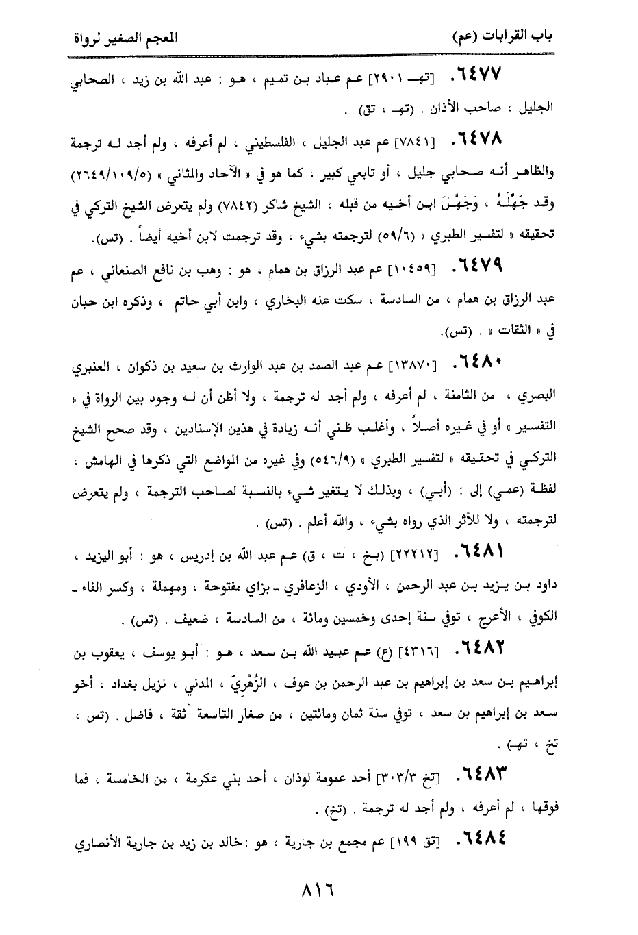 6477. [تهـ 2901] عم عباد بن تيم، هو عبد الله بن زيد الصحابي الجليل، صاحب الأذان. (تهـ، تق).