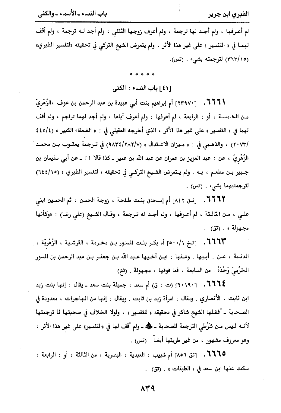 6665. [تق 856] أم شبيب العبدية البصرية، من الثالثة، أو الرابعة، سكت عنها ابن سعد في ((الطبقات)). (تق).