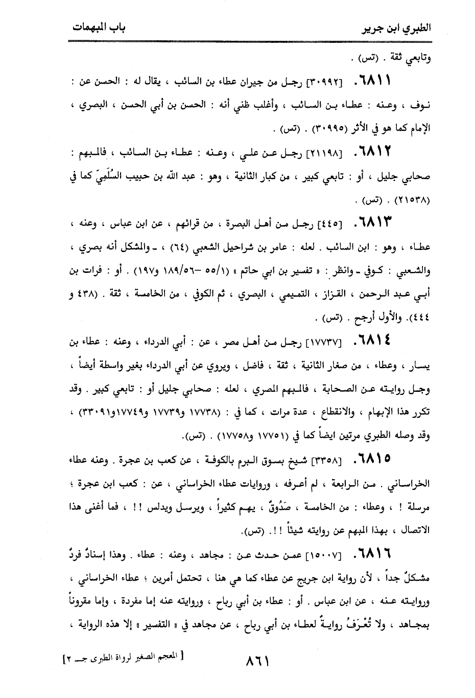 6812. [21198] رحل عن علي، وعنه عطاء بن السائب، فالمبهم: صحابي جليل، أو تابعي كبير، من كبار الثانية، وهو عبد الله بن حبيب السلمي كما في (21538). (تس).