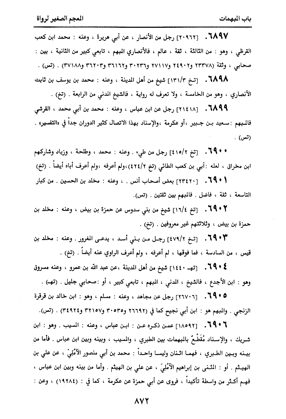 6901. [23420] بعض أصحاب أنس، وعنه مخلد بن الحسين. من كبار التاسعة، ثقة، فاضل. فالمبهم بين ثقتين. (تس).