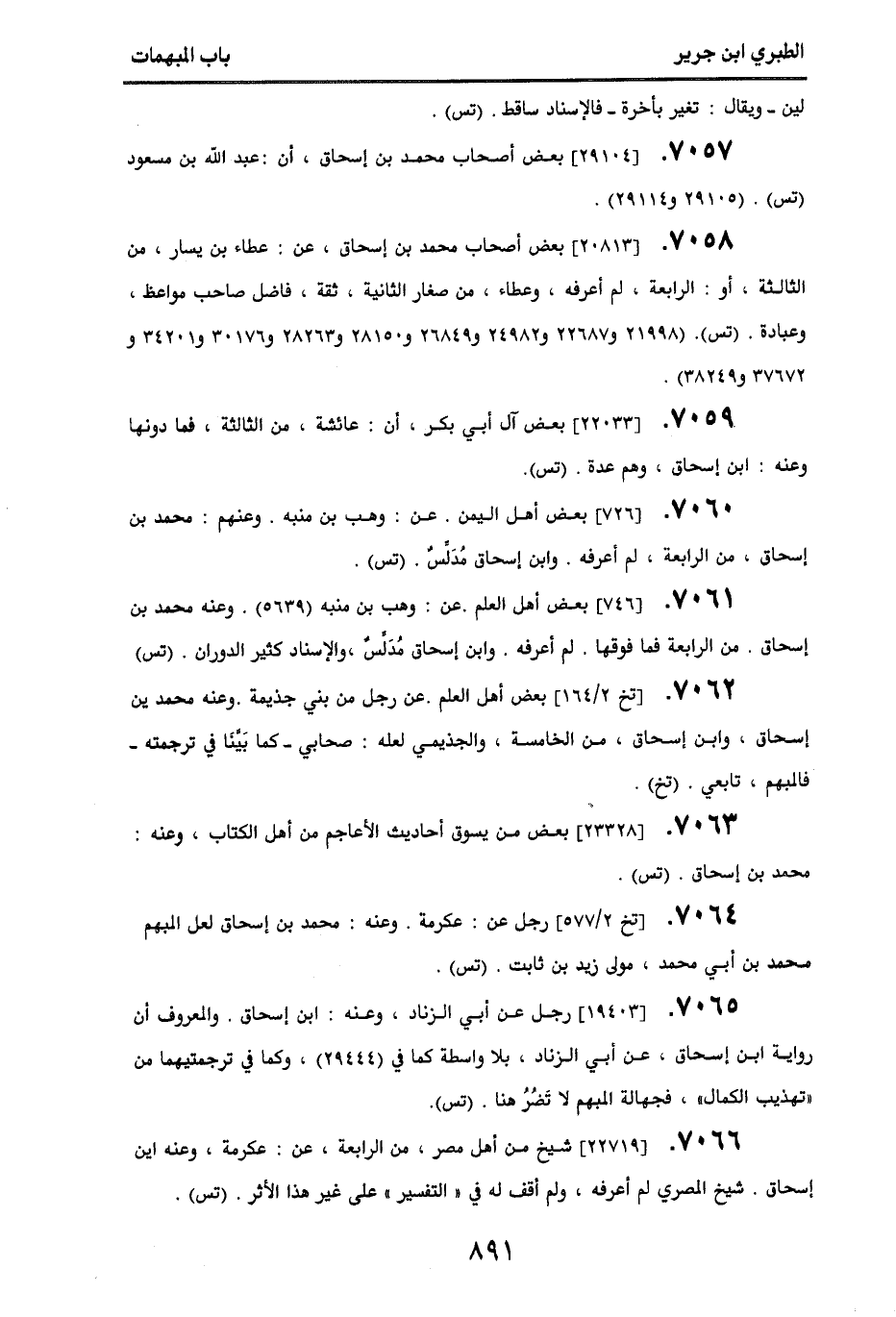 7061. [746] بعض أهل العلم عن وهب بن منبه (5639). وعنه محمد بن إسحاق، من الرابعة، فما فوقها. لم أعرفه، وابن إسحاق مدلس، والإسناد كثير الدوران. (تس).